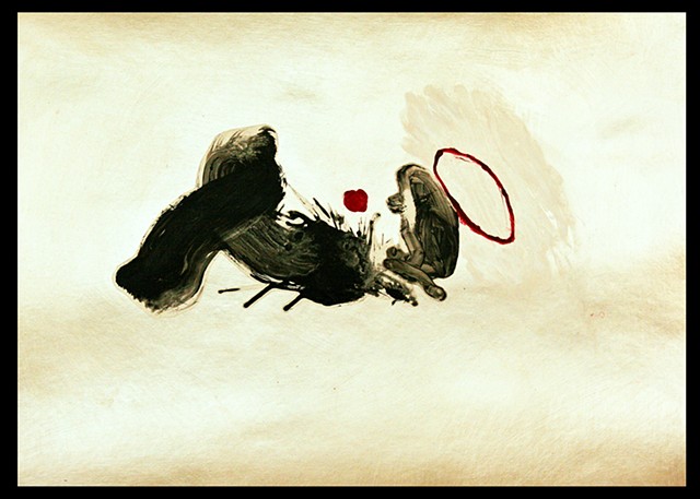 This mix also describes the how I feel about the human heart, which is an impossible combination of dirt and gorgeousness. These brush drawings are meditations on the human heart. Many of them have a spot of red sealing wax in them, which stands for the official acknowledgement that this heart is, indeed, mine.